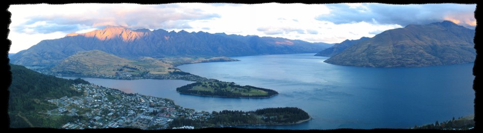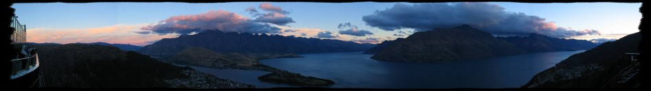 Vormittags haben wir eine Jet Boat Fahrt auf dem Shotover River gebucht. Durch den ununterbrochenen Regen wurde sie allerdings erst ein paarmal verschoben, bis sie dann nachmittags komplett abgesagt wurde. Kurze Zeit später ließ der Regen dann doch noch nach und wir fuhren mit der Gondel hoch auf Bob´s Peak und genossen dort den Sonnenuntergang. |