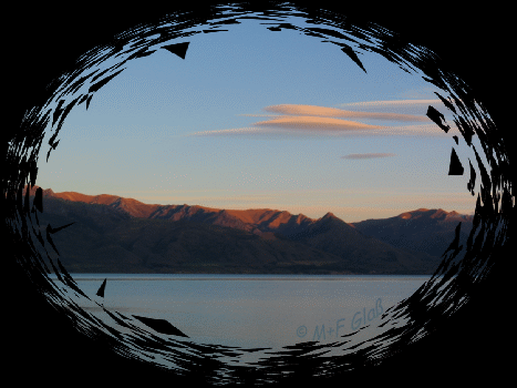 Auf der Suche nach einem netten Standplatz sind wir am letzten Abend in der Dunkelheit so lange am Ostufer des Lake Hawea entlang gefahren, bis keine Farmen und Schafe mehr zu sehen waren und wir somit niemanden stören konnten, wenn wir einfach neben der Straße am See stehen blieben. |