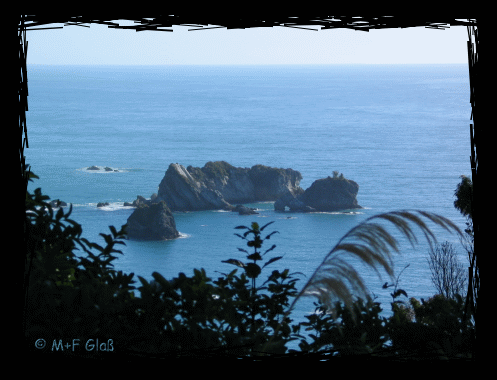 Der Blick auf die Tasman Sea vom Knight Point aus: |