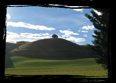 Immer wieder findet man in Neuseeland Schaf-Weiden, die an Tolkien´s Auenland erinnern. |