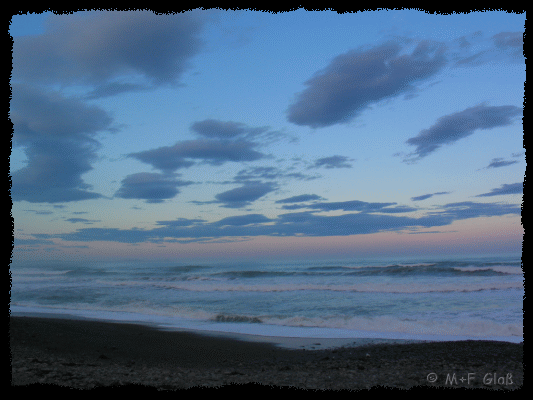 Nachmittags haben wir in Christchurch in einem “Denny´s” Schnellrestaurant gegessen. In USA war das unser Lieblings-Diner und wir hatten uns am ersten Tag in NZ schon gefreut, weil wir “Denny´s”-Werbung im Flughafen gesehen hatten. Schade, dass es das in Deutschland immer noch nicht gibt. Abends haben wir kurz vor Einbruch der Dunkelheit Kaikoura erreicht. |