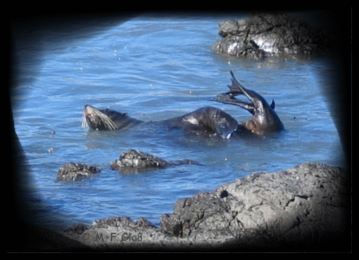 Morgens haben wir am Strand von Kaikoura Robben beim Planschen beobachtet... |