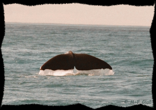 Mittags haben wir eine Whale-Watch-Tour gemacht. Das ist nichts für schwache Nerven. Mit einem Schnellboot saust man von einem abtauchenden Wal zum nächsten und muss bei der Fahrt schnell die Plätze wieder einnehmen. Das war nicht nur stressig, sondern ist auch vielen auf den Magen geschlagen... ;-) Trotzdem war es ein einmaliges Erlebnis so nahe an diesen riesigen Tieren zu sein. (mehr dazu auch auf der Seite: “Tiere in NZ”) |