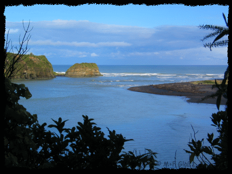 An den Whitecliffs bei Tongaporutu, wo wir an einem Picknick Platz übernachtet haben, sah das Wetter morgens besser aus als am Tag vorher. Also sind wir nochmal bis zum Taranaki (Mt. Egmont) zurück gefahren, um den Vulkan endlich zu sehen. Der Nebel hat uns aber wieder einen Strich durch die Rechnung gemacht. |