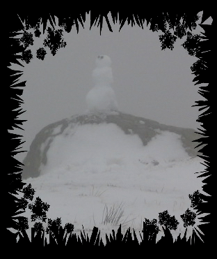 Wir sind durch den Nebel zur Skiarea oben auf dem Taranaki gefahren. Dort lag tatsächlich etwas Schnee und jemand hatte einen kleinen Schneemann gebaut. Sonst gab es aber auch hier nur Nebel zu sehen. |