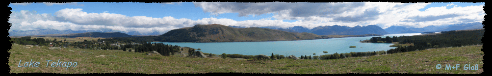 Morgens konnten wir am Lake Emma einen traumhaften Sonnenaufgang genießen. Unser Ziel für diesen Tag hieß Aoraki / Mount Cook National Park. Der Weg dorthin führte vorbei an wunderschönen, türkisblauen Gletscherseen. |