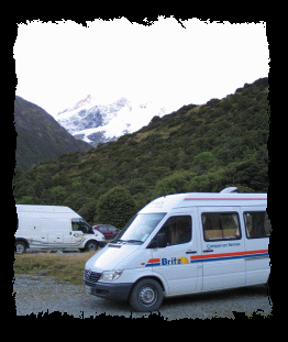 Als wir im Mount Cook NP angekommen waren stellten wir fest, dass wir tanken mussten. Es gab dort nur eine einzige kleine Tankstelle, bzw. zwei Zapfsäulen ohne Kassierhäuschen. Mit unseren Kreditkarten funktionierte das Gerät nicht, nur mit inländischen Karten hätten wir eine Chance gehabt an Diesel zu kommen. Es hat zwei Anrufe mit dem am Kartenlesegerät hängenden Telefon, einen Besuch im Visitor Centre, einen Besuch im Hermitage Hotel, viel Zeit und jede Menge Nerven gekostet, bis jemand kam, der unserm WoMo gegen Bares den Bauch füllte. Danach haben wir uns dann nur noch ein nettes Plätzchen auf dem nahen DoC Camping Platz mit dem mächtigen Aoraki im Rücken gesucht. |