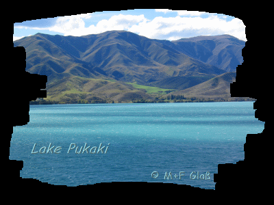 Bevor wir abends bei den Moeraki Boulders ankamen, sind wir wieder am Lake Pukaki entlang gefahren. Die türkisblaue Farbe haben die Seen vom Gletscherwasser. |