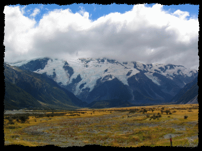 Vom Lake Pukaki aus konnten wir trotz Wolken einen Blick auf die schönen Süd-Alpen werfen. |