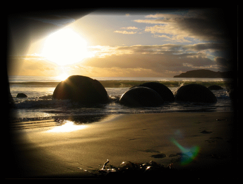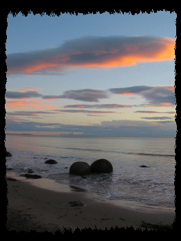 Gestern Abend sind wir nach der Beobachtung der Blue Penguins bis zu den Moeraki Boulers gefahren und haben dort auf dem kleinen Schotter-Parkplatz übernachtet. Morgens sind wir dann im Dunkeln an den Strand gegangen um dort die Boulders im Sonnenaufgang zu fotografieren. Es war eine tolle Stimmung. Wir waren fast alleine dort, was tagsüber so gut wie unmöglich ist. Außer uns war nur noch ein Fotograf da. |