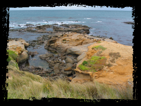 Als es hell wurde haben wir im WoMo gefrühstückt und geduscht, sind in den nahe gelegenen Souvenir Shop gegangen und haben die Boulders nochmal kurz im hellen von oben betrachtet. Mit dem Licht und der Ebbe kamen auch die vielen Touristen, also sind wir lieber weiter zum Shag Point gefahren. |