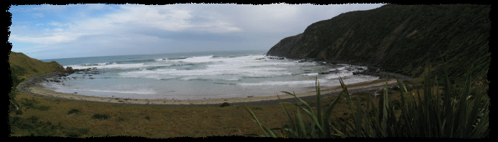 In dieser Bucht (unten) konnten wir einen Yellow-eyed Penguin beobachten. |