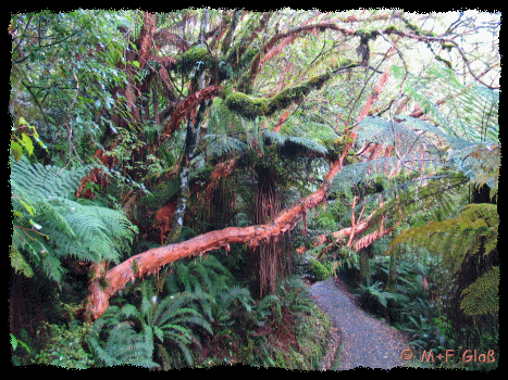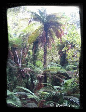 Die Wälder in Aotearoa sind sehr urig mit riesigen Farn-Bäumen, plätschernden Bächen und knorrigen, moosbewachsenen Bäumen. |