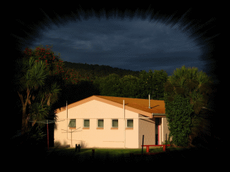 Das Wetter sah morgens nicht sehr vielversprechend aus. Während die Sonne noch das Toilettenhäuschen vom Papatowai Motor Camp anstrahlte, näherten sich schon dunkle Regenwolken... |