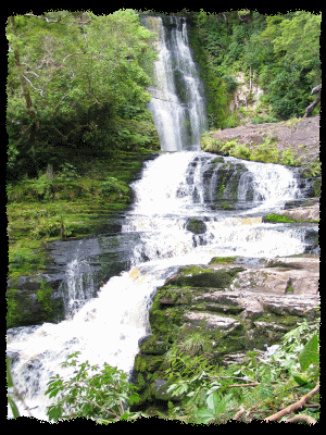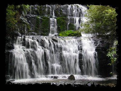 Rechts sind die zauberhaften Matai Falls zu sehen. Die McLean Falls (auf dem unteren Bild) sahen im letzten Jahr durch noch mehr Wasser noch spektakulärer aus. |