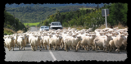 Auf dem Weg ins Fiordland haben uns diese pelzigen Verkehrsteilnehmer zu einer kurzen Pause gezwungen. |