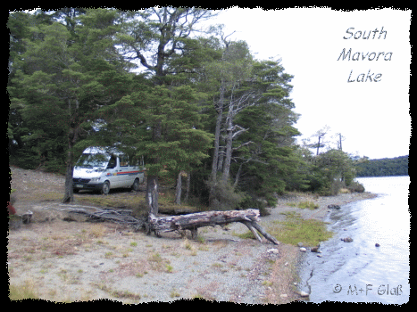 Das sonnige Wetter vom Mavora Lake hielt leider nicht bis Te Anau an. Weder am Lake Manapouri, noch am Lake Te Anau konnten wir die schöne Landschaft sehen, weil die Wolken zu tief hingen. |