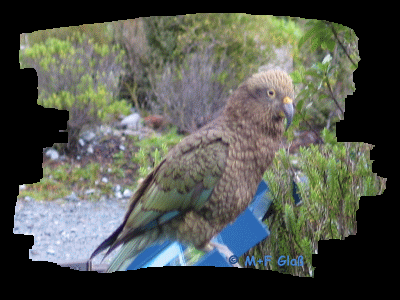 Die Wartezeit auf´s Boot fahren haben uns zwei Keas verkürzt. Endlich Keas! Diese lustigen Vögel wollte ich schon lange live sehen. Am Mount Cook waren sie nur im Dunkeln am Campervan und sonst haben wir höchstens ihre Schreie gehört, aber nichts gesehen. |