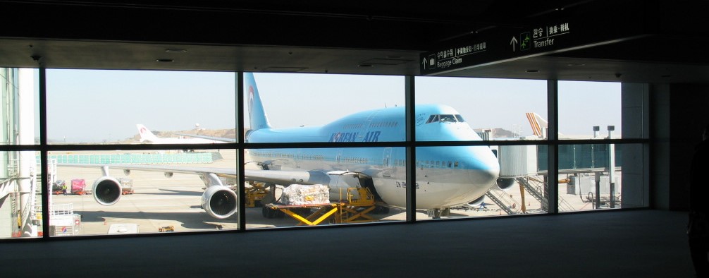 Fast wären wir dort direkt auf der Rolltreppe einem Lawinen-Koffer zum Opfer gefallen. Man glaubt es kaum wie hoch manche Leute ihr Gepäck auf die Wagen türmen. Dass so was auf Rolltreppen schief gehen muss, ist klar, aber wir konnten zum Glück ausweichen... Der erste Flug von Frankfurt nach Seoul (Korea) hat „nur“ 9 h 40 min gedauert. Im Incheon Flughafen hatten wir ca. 6 Stunden Aufenthalt bevor wir abends von dort in ca. 10 h 30 min turbulent weiter geflogen sind nach Auckland. Danach waren die 1 h 20 min von Auckland nach Christchurch wie ein Spaziergang. |