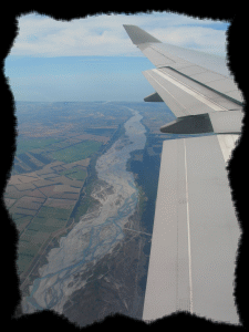 Hier sieht man den Waimakariri River bei Christchurch kurz vor der Landung. |