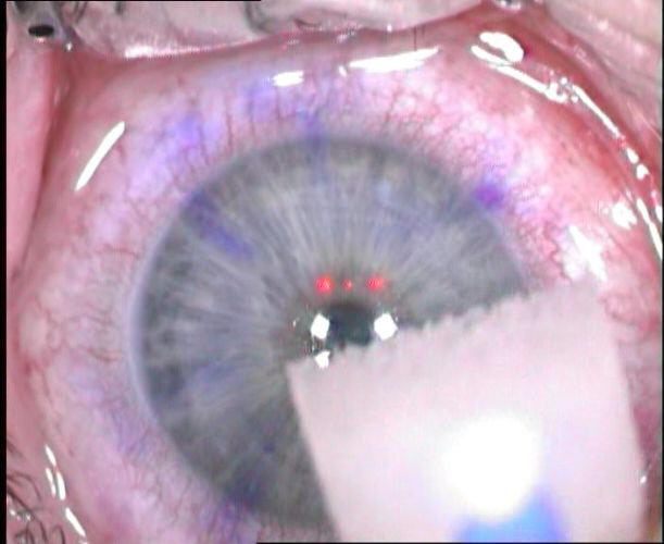 Der Laser war nach einigen Sekunden fertig und das Häutchen (Flap) wurde zurückgeklappt und sorgfältig glatt gestrichen.Abschließend wurde eine weiche Kontaktlinse zum Schutz der Wunde eingelegt, die am nächsten Tag vom Arzt wieder entfernt wurden.