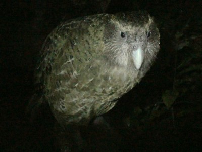 Kakapo bedeutet in der Sprache der Maori Nachtpapagei (Kaka = Papagei, Po = Nacht). In Deutsch wird er auch Eulenpapagei genannt. Wie der Name schon sagt, sind Kakapos nachtaktiv. Sie sind die schwersten Papageien der Welt. Männchen können um die 3 kg schwer werden. Kakapos können nicht fliegen, aber ausgezeichnet auf Bäume klettern. Leider sind sie auch die seltensten Papageien der Welt, denn zurzeit (Stand 2009) gibt es nur 124 bekannte Tiere.