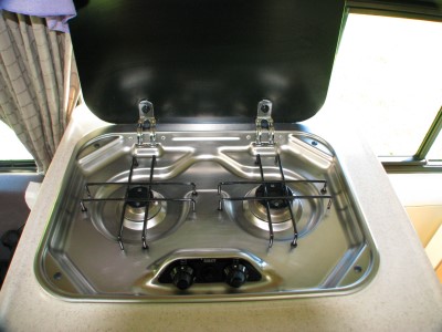 Die elektrische Heizung befand sich über der Mikrowelle und funktionierte wie diese nur mit Stromanschluss auf Campingplätzen und war nicht so effektiv wie die Gasheizung, konnte aber auch als Klimaanlage genutzt werden (was wir zu der Jahreszeit nicht brauchten). Der Kea hatte vorne einen CD-Player mit Lautsprechern auch hinten über den Sitzbänken. |