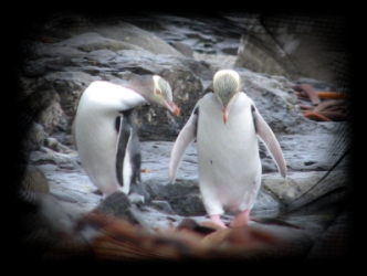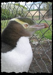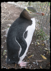 Der Gelbaugenpinguin wird auf englisch Yellow-eyed Penguin genannt, sein Maori-Name lautet: Hoiho. Er ist der seltenste Pinguin der Welt und so wie der Kiwi vom Aussterben bedroht. Der Hoiho wird ca. 65 cm groß und man findet ihn hauptsächlich an den Küsten der Südinsel, vor allem bei Dunedin, am Taiaroa Head und in den Catlins, und auf der Rückseite des 5,- NZ$ Scheines. ;-) |