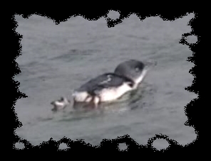 Diesen Blue Penguin (links) haben wir bei einer Bootstour am Taiaroa Head (Otago Peninsula) im Wasser gesehen (es könnte auch ein White-Flippered Penguin gewesen sein). Auch ihn konnte ich leider nur von einem verwackelten Video abfotografieren. |