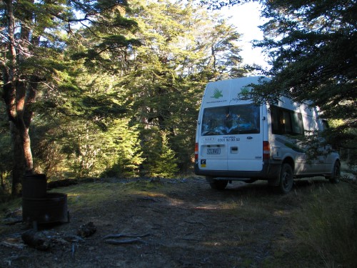 Dieses idyllische DoC Camp liegt relativ gut versteckt und einsam ungefähr zwischen Milford und Queenstown am Mavora Lake. |
