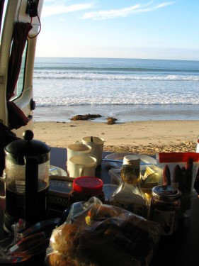 Oft wird erwähnt, dass es in Neuseeland die Möglichkeit gibt “wild” zu campen, also dort über Nacht mit dem WoMo stehen zu bleiben, wo es einem gerade gefällt. Ein Beispiel für “Overnight Parking” direkt am Meer inkl. Sonnenaufgang und Frühstück im WoMo am Strand sieht man hier: |
